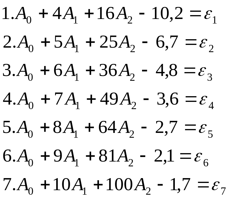Підстановкою значень вимірювань в це рівняння отримаємо систему початкових рівнянь