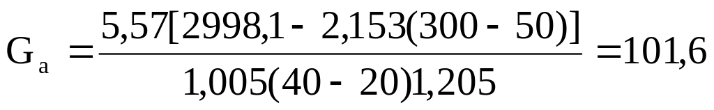 Gf = 1,153(300 - 50) + 2998,1/1,005 (40 - 20)1,205 = 135,3 м3час-1.