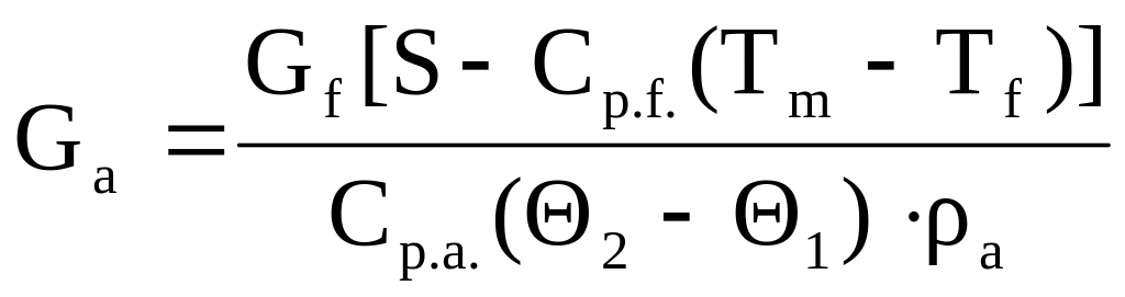 Ga · Cp.a.· (Θ2 – Θ1) · ρa = Gf [S – Cp.f. (Тm - Тf)] .