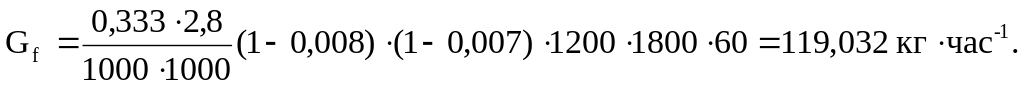 Gf = 10(1-0,01) (1-0,008) 2,73500/1000 = 92,81 гмин-1 = 5,57 кгчас-1.