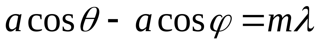 ці когерентні хвилі розходяться в усіх напрямках. Розглянемо довільний напрямок, що характеризується кутом (див. рисунок 2.31). Різниця ходу двох променів, що проходять через кожну пару сусідніх атомів, дорівнює а(cos — cos 0). Для того, щоб в напрямку α вийшов дифракційний максимум, необхідне виконання умови:
