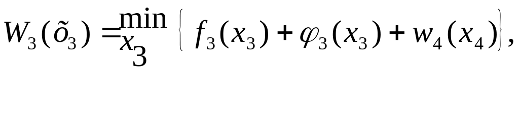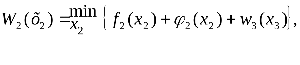 Поскольку х0 = 2 задано по условиям задачи, то необходимо найти условно-оптимальные затраты только при х0 (значения W2(х2) из таб. 3.