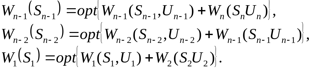 Определяются условно-оптимальные эффекты (выигрыши) и соответствующие этим эффектам управления от предпоследнего (n-1) -го и до первого шагов процесса: