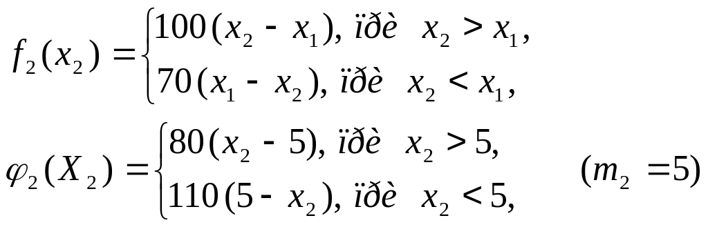 W1(x1) = 70 (2 - 0) + 110 (2-0) + 660 = 1020 тыс |