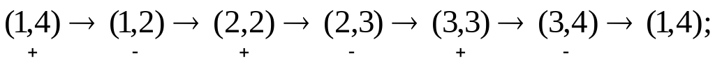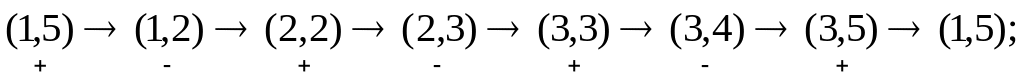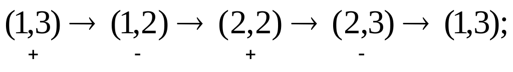 последовательная нумеровка входящих клеток каждого цикла порядковыми номерами. начиная с пустой клетки, или обозначения их знаками +, -, +, - и т.д.