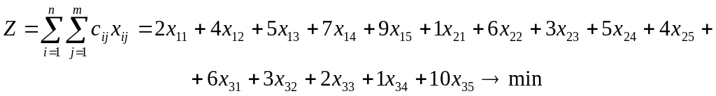 cij - затраты на транспортировку единицы груза из i-го пункта отправления в j-й пункт назначения;