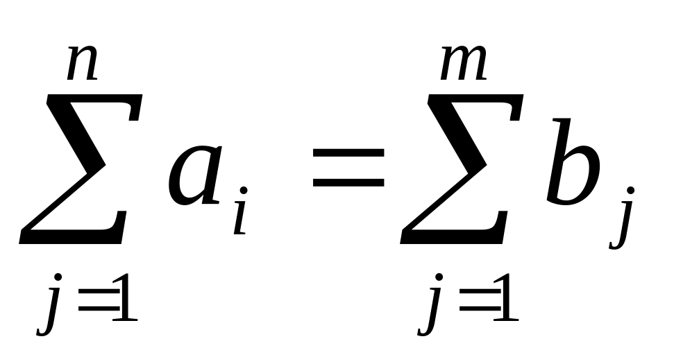 с n + m ограничениями, то есть с уравнениями с n + m неизвестными. Транспортная задача, у которой суммарное наличие груза совпадает с суммарной потребностью, то есть выполняется условие
