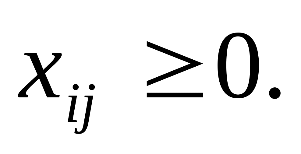 Система ограничений (2) говорит о том, что весь груз из каждого пункта его сисредоточения должен быть вывезен, система ограничений (3) - потребность в грузе в каждом пункте должна быть удовлетворена, система ограничений (4) - по любому маршруту либо перевозится некоторое количество груза xij > 0, либо нет xij = 0.