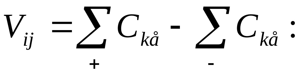 2). оценка овободной клетки - разность между суммами тарифов cij в клетках цикла со знаком "+" и со знаком "-" (клетки цикла, начиная с пустой, обозначаются чередующимися знаками +, -, +, - и так далее)