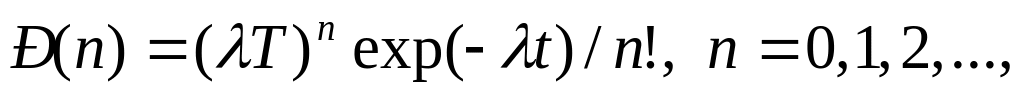 2) вероятность того, что за любой, уже достаточно большой период времени Т>> прибудет n автомашин, подсчитывается по формуле