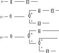На рисунке 8 приведен пример построения программной функции циклической программы. В данном случае [P] рекурсивно зависит от f1 и f2.