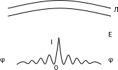 На рис. 2 показано хід крайніх променів у пучках, для яких кут φ має різні значення. Ці промені створюють у фокальній площин лінзи максимуми інтенсивності світла. На цьому ж рисунку подано графік розподілу інтенсивності І світла на екрані в залежності від різниці ходу крайніх променів.