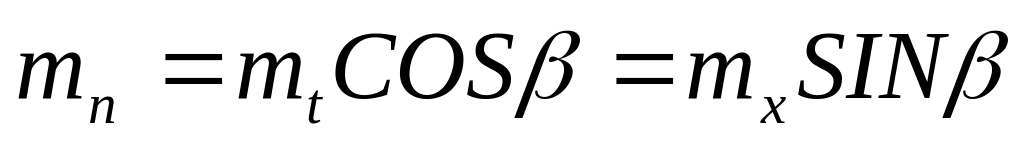 Так как нарезание зубьев косозубого колеса выполняется стандартной рейкой, установленной под углом к оси заготовки, за стандартный обычно принимается нормальный модуль.