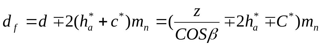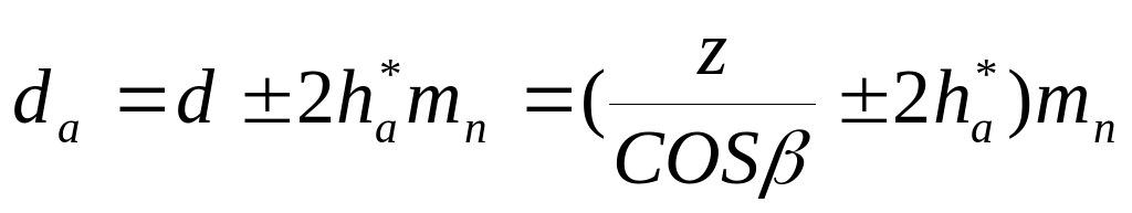 Основные размеры косозубого колеса, нарезанные без смещения, определяются следующими выражениями: