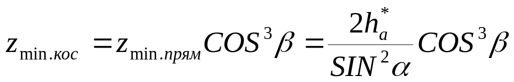 Учитывая, что минимальное число зубьев для прямозубого колеса, нарезаемого без смещения, при отсутствии подрезания определяется формулой (5.20), аналогичная формула для косозубого колеса, с учетом (5.39) будет