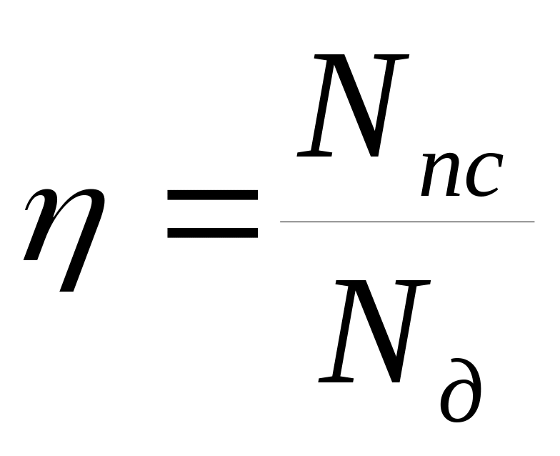 При работе механизма в установившемся режиме, как следует из выражения (6.11), работа движущих сил идет на преодоление сил полезного и вредного сопротивлений. Для оценки качества механизма с точки зрения использования, поступающей энергии вводится понятие коэффициента полезного действия механизма (КПД) – как отношение абсолютной величины работы (или средней мощности) сил полезного сопротивления к работе (или средней мощности) движущих сил за один полный цикл установившегося движения механизма. Т.е.