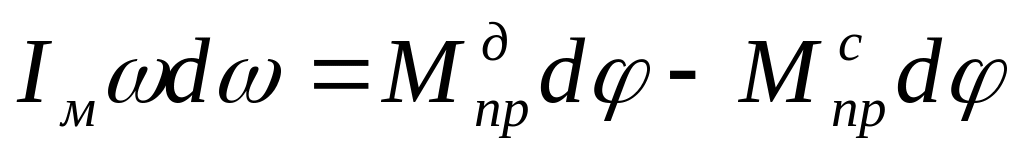Полагая, что момент инерции ведущего звена равен моменту инерции маховика (в силу допущения 2), основное уравнение движения механизма можно записать