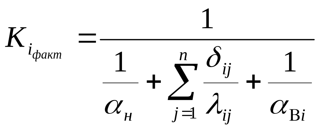 При вычислении коэффициентов теплопередачи каждый элемент ограждения кузова принимают как многослойную плоскопараллельную стенку и используют соответствующую формулу.