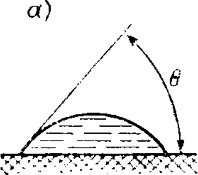 Поверхность любого изоляционного материала может смачиваться или не смачиваться водой или другими жидкостями. Эта способность характеризуется краевым углом смачивания . Чем меньше , тем сильнее смачивание. Для смачиваемых поверхностей θ < 90° (рис. 24, а), для несмачиваемых θ > 90° (рис. 24, б).