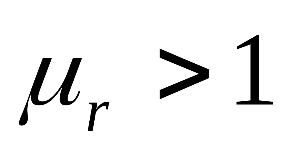 У ферримагнитных материалов относительная магнитная проницаемость , а относительная магнитная восприимчивость .
