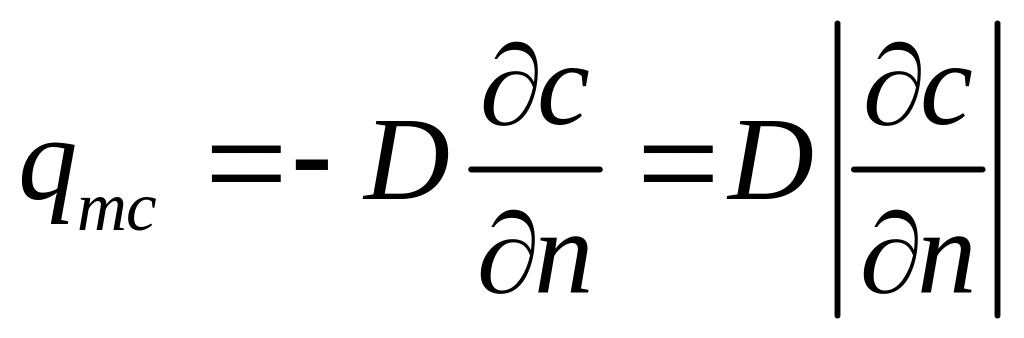 Удельный поток субстанции q (приходящий на 1 м2 изоповерхности в 1с и нормальный к этой поверхности) пропорционален градиенту потенциала переноса.