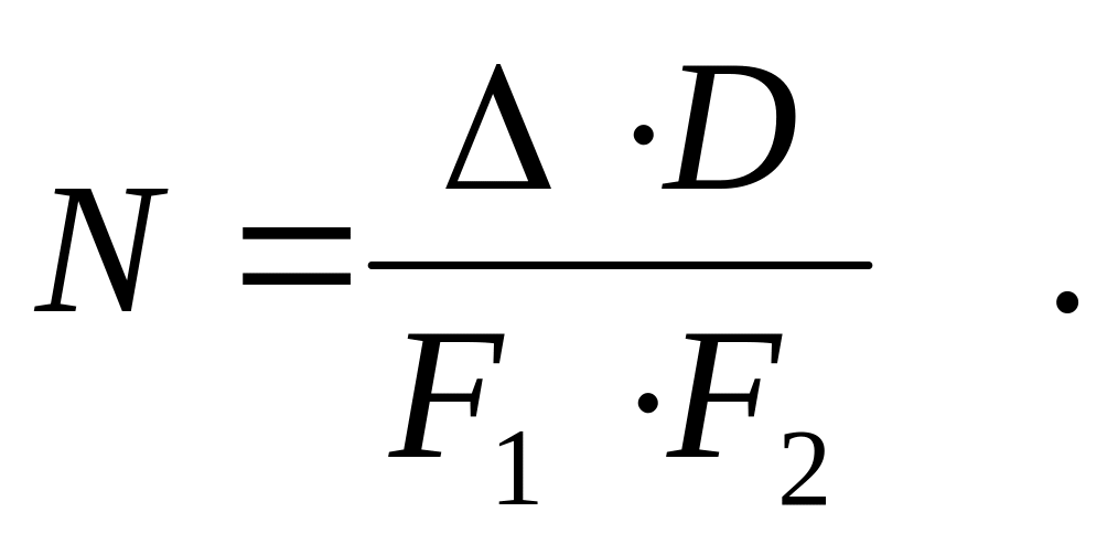 где - фокусное расстояние объектива; - фокусное расстояние окуляра; Δ – оптическая длина тубуса; D – расстояние наилучшего зрения.