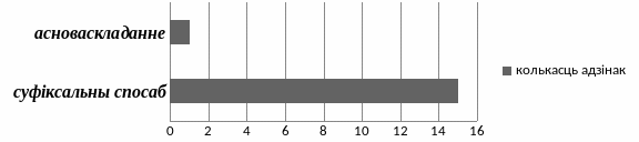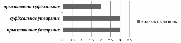 б) суфіксальнае ўтварэнне (столькі ж адзінак);