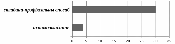 Спосаб асноваскладання не быў пашыраны ў старабеларускай мове (у ГСБМ зафіксавана толькі адна каляровая адзінка) у адрозненне ад суфіксальнага (зафіксавана 15 каляровых адзінак).