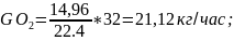 VpO2 = VO2 – V1O2 – V2O2, м3/час;