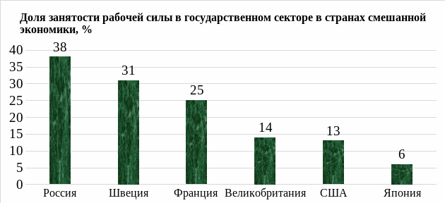 Рисунок 1.6 – Доля занятости рабочей силы в государственном секторе в странах смешанной экономики