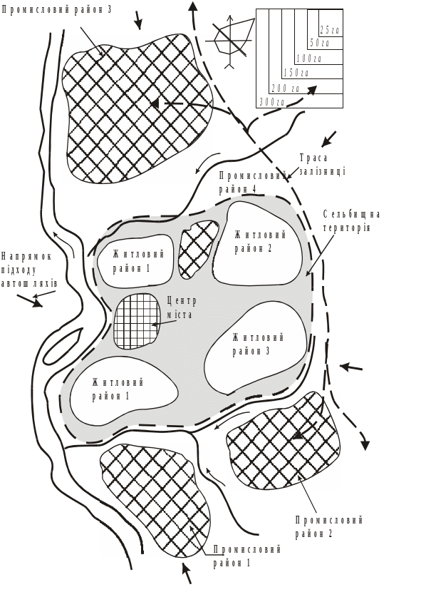 - •Вибір території розміщення міста та її функціональне зонування