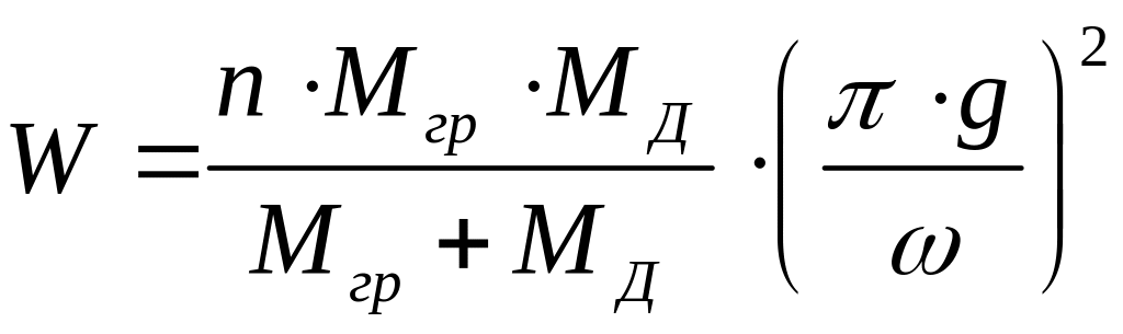 Сумарна жорсткість усіх пружин визначається з рівняння частоти власних коливань системи