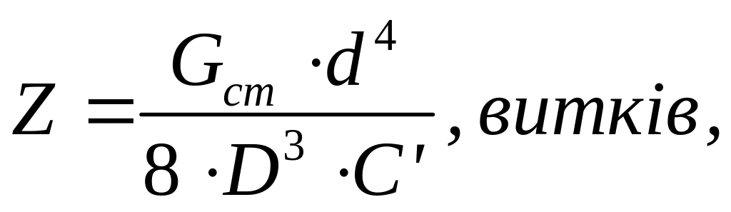 Задаючись геометричними розмірами пружини, визначаємо число її робочих витків, що відповідають даній жорсткості С’