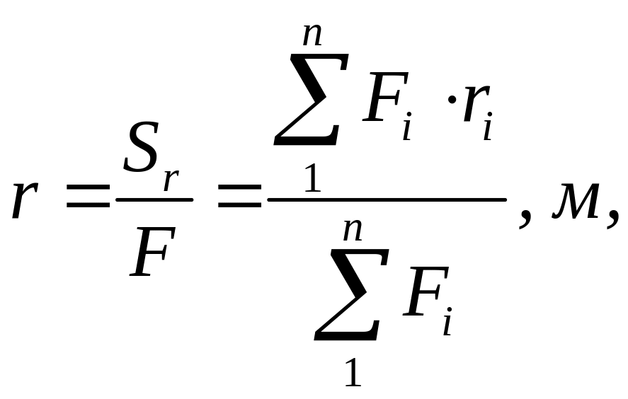Аналітично, в загальному випадку, відстань R можна знайти за рівнянням статичних моментів площ елементарних частин, на які поділяється плоска фігура не зрівноваженої частини дебалансу (наприклад, на квадрати).