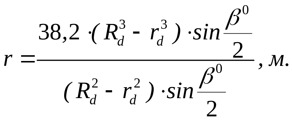 При дебалансі, що має форму частин кругового кільця (рис. 5.2), відстань визначають аналітично за формулою