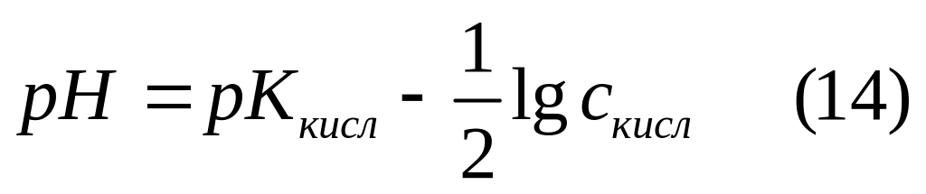 Чтобы от [Н+] перейти к рН раствора, прологарифмируем уравнение (12) и переменим знаки у логарифмов на обратные: