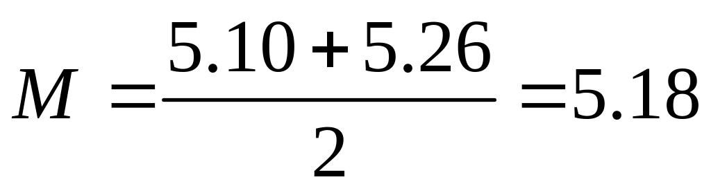 4.99; 5.10; 5.26; 5.31. В данном случае имеется два центральных значения, поскольку число результатов четное; поэтому