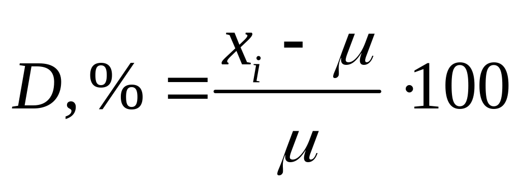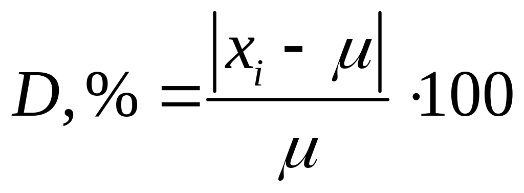Здесь D — абсолютная погрешность (в тех же единицах, что и измеряемая величина); Xi — единичное измерение; — истинное значение.