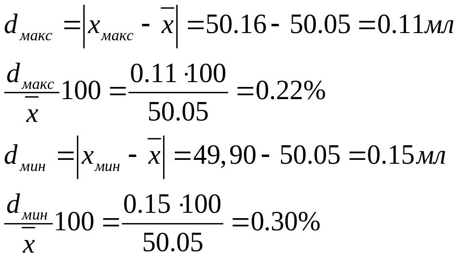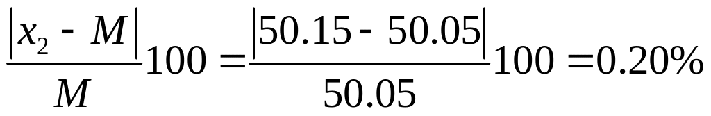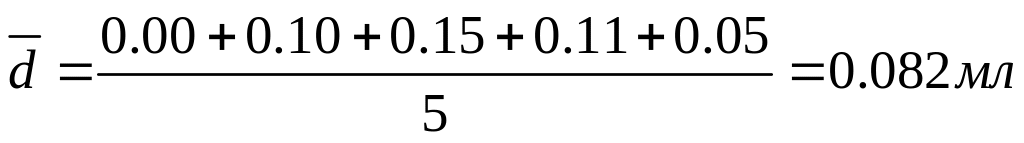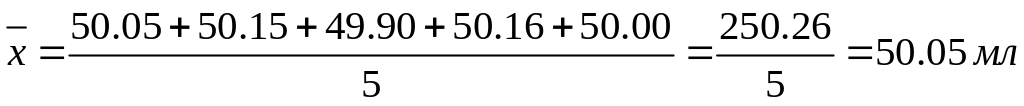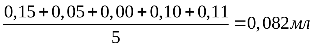 пример 4. Найдите отклонения от среднего и среднее отклонение результатов определения объема колбы (мл): 50.05; 50.15; 49.90; 50.16; 50.00.