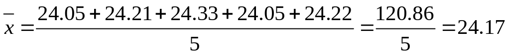 пример 2. Найдите среднее и медиану результатов определения сульфат-иона в растворе серной кислоты (%): 24.05; 24.21; 24.33; 24.05; 24.22.