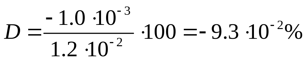 Здесь D — относительная погрешность (в процентах).