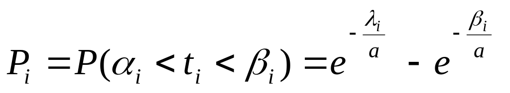 Вероятность Pi попадания замера в частичный интервал вычисляем по формуле