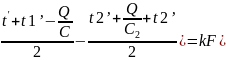 Q=(1/kF+1/2C1+1/2C2)= t1’- t2’