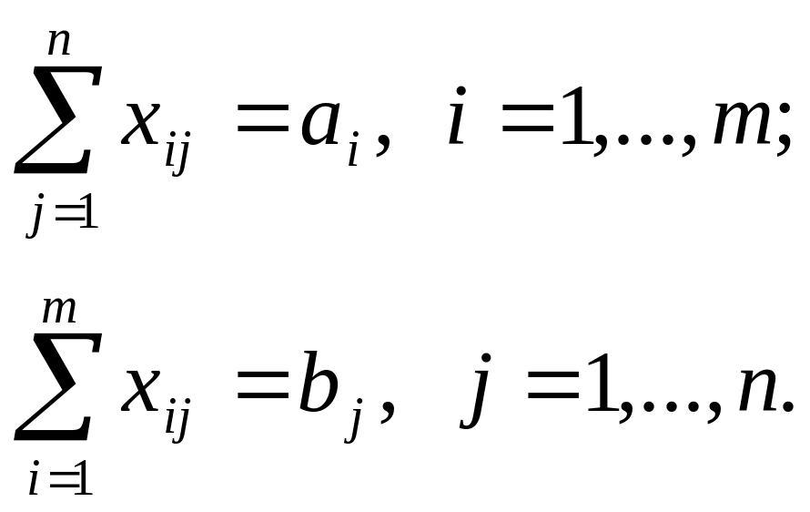 Условия «все грузы должны быть перевезены» и «все потребности должны быть удовлетворены» выразятся следующими формулами: