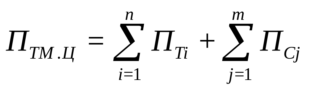 Потери предприятия в результате уничтожения (повреждения) аварией товарно-материальных ценностей, Птм.ц , можно определить по сумме потерь каждого вида ценностей следующим образом по формуле