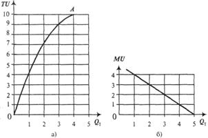 Потребляя некоторое число единиц одного товара, человек получает общую полезность, состоящую из суммы убывающих предельных полезностей. (Общая (суммарная) полезность (TU) – полезность, извлекаемая от потребления, определенного количества благ или услуг.) В теории принято называть условные единицы величины предельной полезности “ютилями” (от англ. utility – полезность).