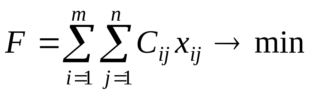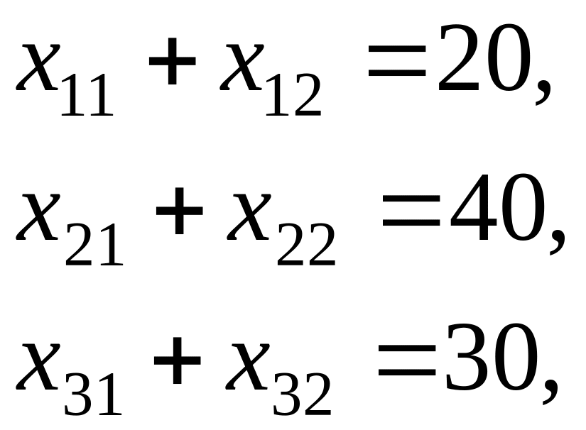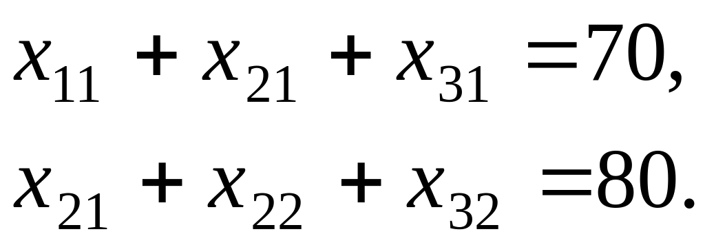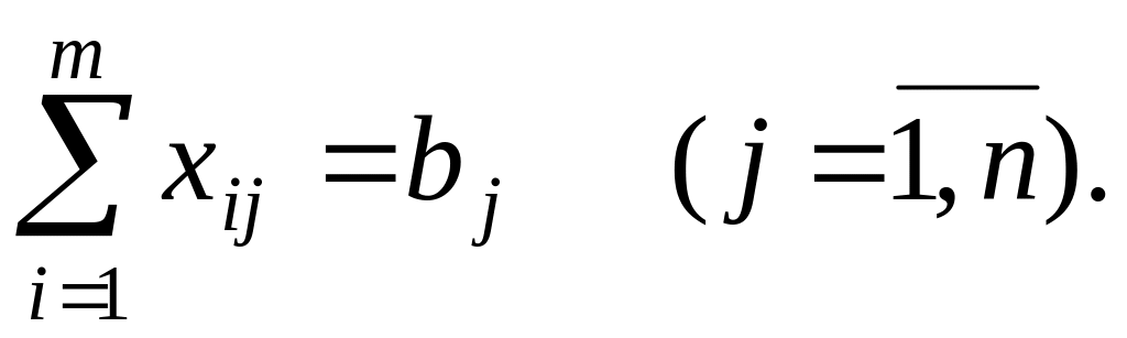 а кількість вантажу, що приймається j-м пунктом споживання від усіх пунктів постачання