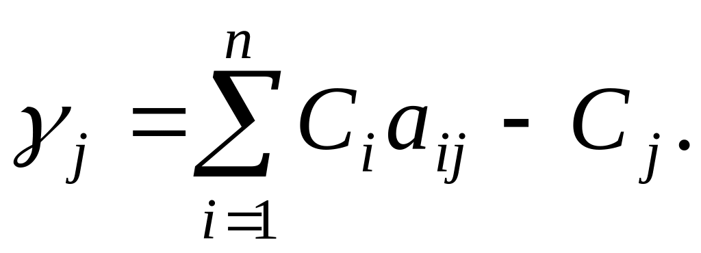 Нижній рядок таблиці, який називають індексним, призначений для аналізу знайденого варіанта розв’язку на оптимальність. Елементами цього рядка є коефіцієнти , які розраховують за формулою