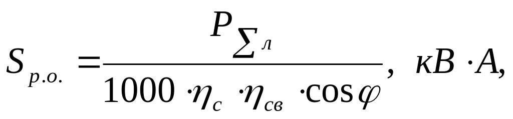 где ηс – КПД сети, 0,92 – 0,95; ηсв – КПД светильника, 0,85;