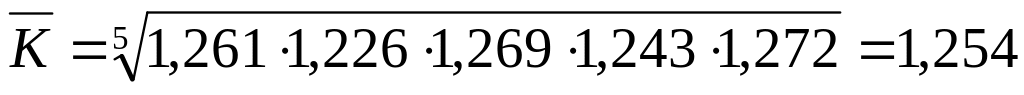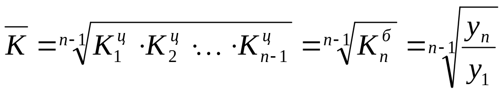 Средний коэффициент роста вычисляется по формуле средней геометрической из цепных коэффициентов роста ряда: